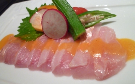 | 和歌山 平鱸(ヒラスズキ)お造り or カルパッチョ 大分 鯵 お造り or カルパッチョ 佐島 かわはぎ お造り 肝醤油 北海道 毛ガニと有機ミニトマト サラダ仕立て ホワイトバルサミコ 千葉 真鰯 自家製オイルサーディン 北海道 桜鱒(サクラマス)塩焼き |